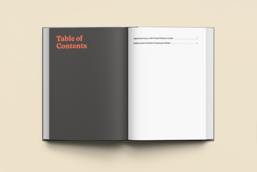 Focusing on user-friendliness, Adobe InDesign was used to create clear and functional layouts for every element of the recipe book. This encompassed designing an inviting cover, a comprehensive table of contents for easy navigation, intuitive recipe pages that facilitated clear information hierarchy, and a functional index for efficient recipe retrieval.